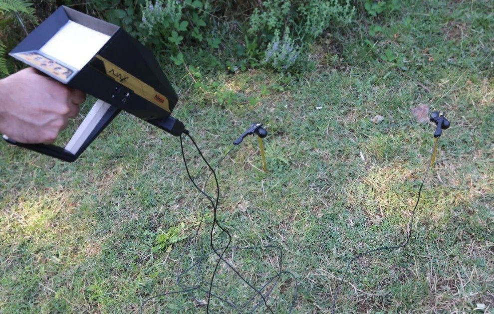 Additionally, the detector can identify underground water by connecting a special box to the main unit and linking cables to the geo probes. The results will then be displayed on the screen.