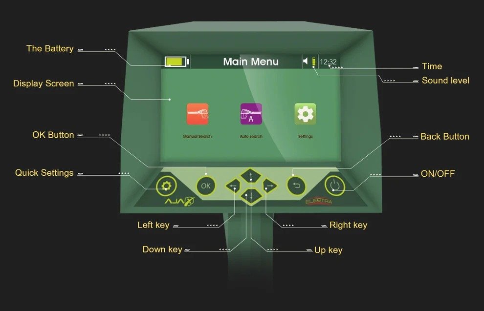 Ajax ELECTRA stands out as a leading long-range detector for diamonds and gemstones. Building upon the traditional rod method, Ajax has refined and modernized this approach to deliver enhanced accuracy and versatility. This advanced device offers user-friendly operation combined with powerful transmitted and received signals, enabling it to scan distances up to 2850 meters and depths reaching 100 meters for reliable detection results.