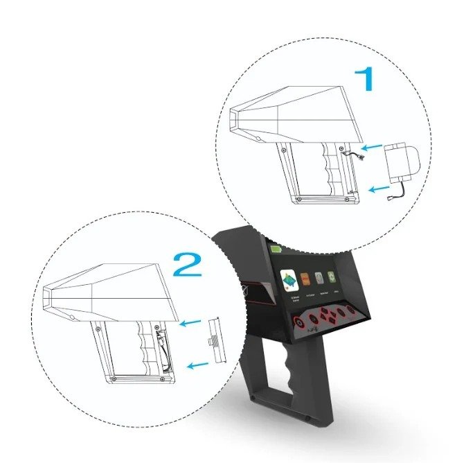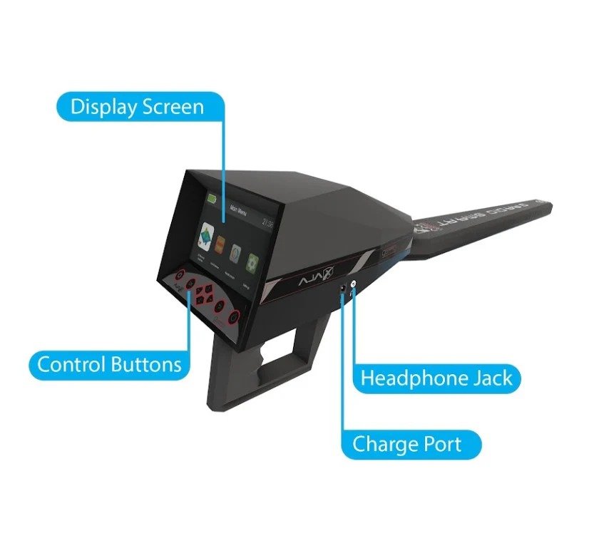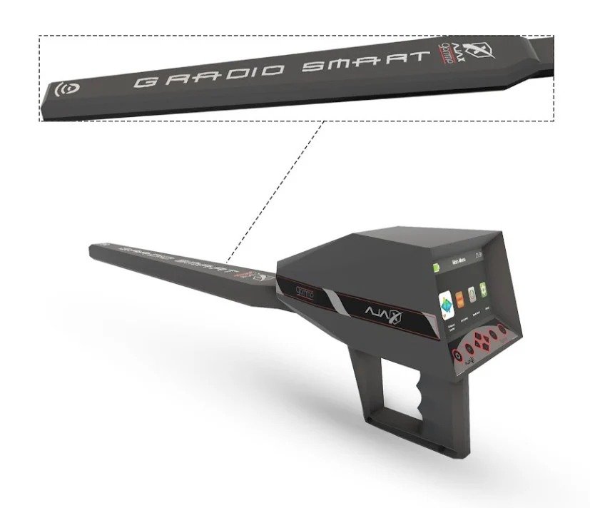 This device offers flexibility. It can be used as a handheld unit for precise, close-range searches or adjusted for optimal performance with various search systems. For example, while using the Gradio Smart system, the device can be handheld effortlessly, adapting to your needs. This ensures you have the right tools for any prospecting scenario, enhancing convenience and efficiency.