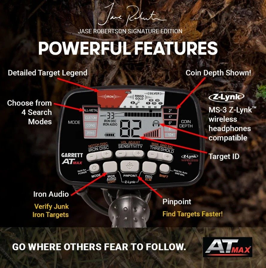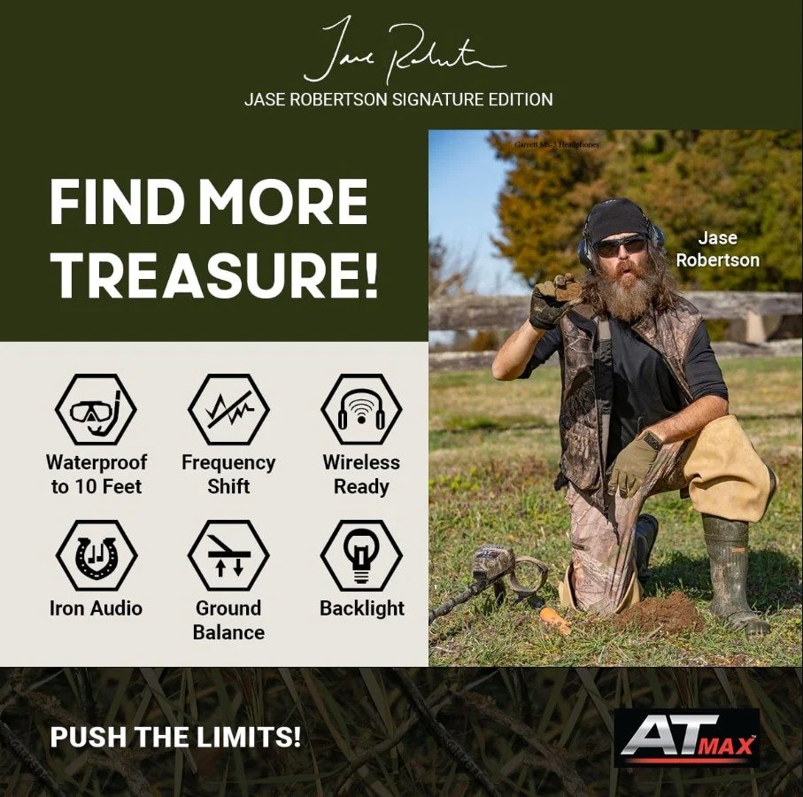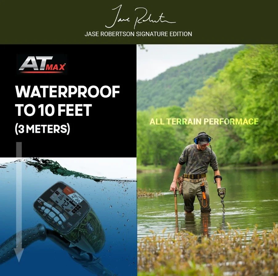 The AT Max Jase Robertson Edition is a powerful device celebrated for its association with the Duck Family Treasure TV Series and the Robertson family’s fame with Duck Dynasty. This special edition detector is finished in an exclusive camo pattern, and it’s versatile across dusty, humid, or wet environments. Ideal for enthusiastic treasure hunters and fans of the show, this detector offers powerful, wireless all-terrain performance, and it includes a 6″ x 11″ DD Viper AT Search Coil and MS-3 Z-Lynk wireless headphones. The AT Max’s design and advanced features make it a popular choice for anyone seeking to uncover precious treasures in the most challenging environments.
