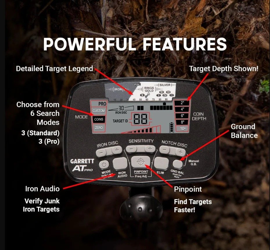 The AT Pro is equipped with ground balance features, which automatically adjust to varying soil types. This helps reduce false signals and enhance detection accuracy.