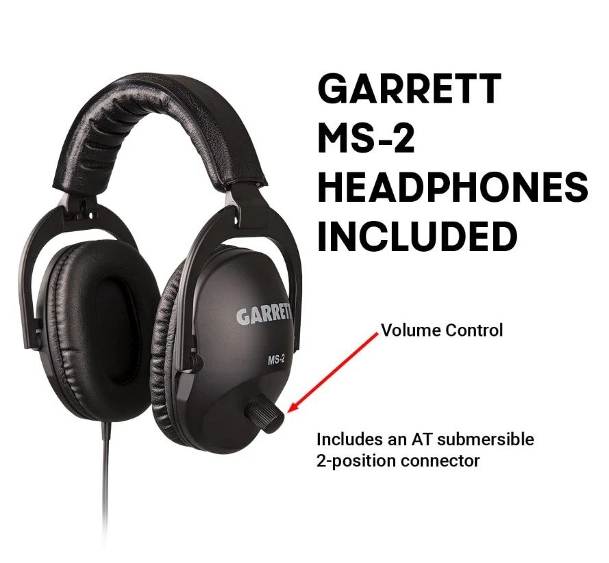 MS-2 Headphones Included:  Gear up right out of the box with Garrett’s MS-2 wired headphones featuring volume control and a comfortable design — they isolate ambient noise for peak detecting performance.