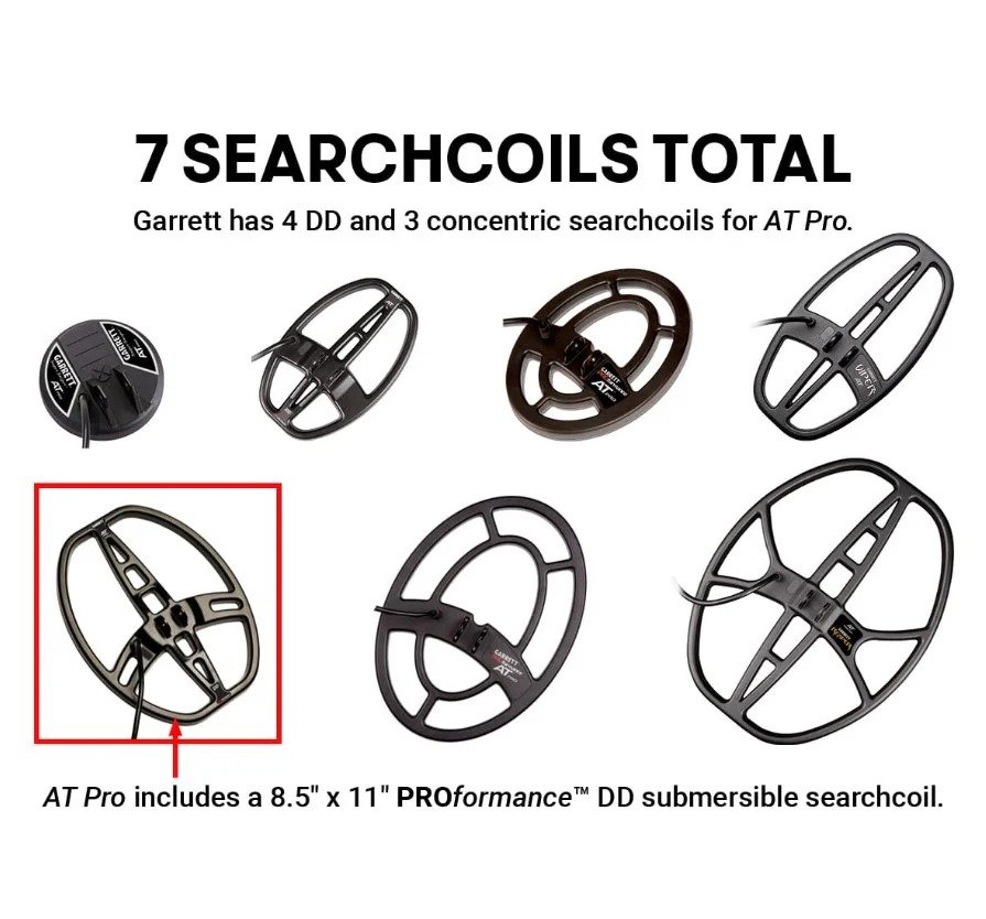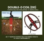 • Search Coil: Features the 8.5″ x 11″ PROformance DD submersible search coil. This waterproof search coil enhances the capability for underwater hunting and ensures durability in various environments.