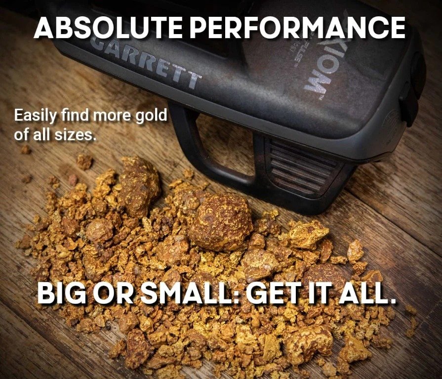 The Garrett Axiom with MS-3 Wireless Headphones, 13″x11″ DD Coil, and 11″x7″ Mono Coil is a high-performance Pulse Induction (PI) gold detector, and its maximum detection depth depends on several factors — such as target size, ground mineralization, and coil selection.