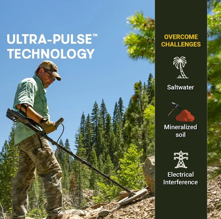 Ultra-Pulse Technology for Deep Detection: Features advanced pulse timings for enhanced sensitivity in highly mineralized soils and saltwater environments—capable of detecting everything from sub-gram gold pickers to larger nuggets.