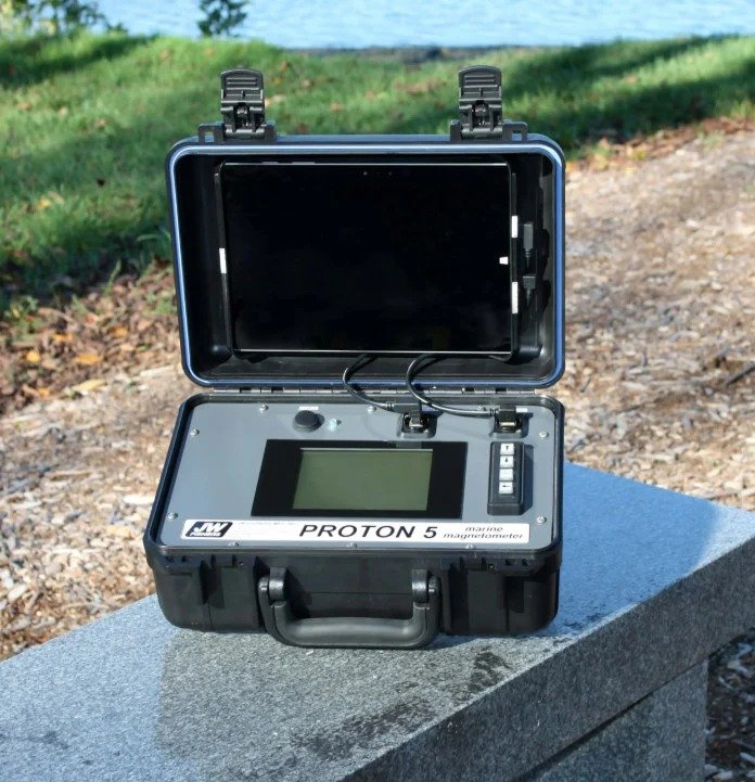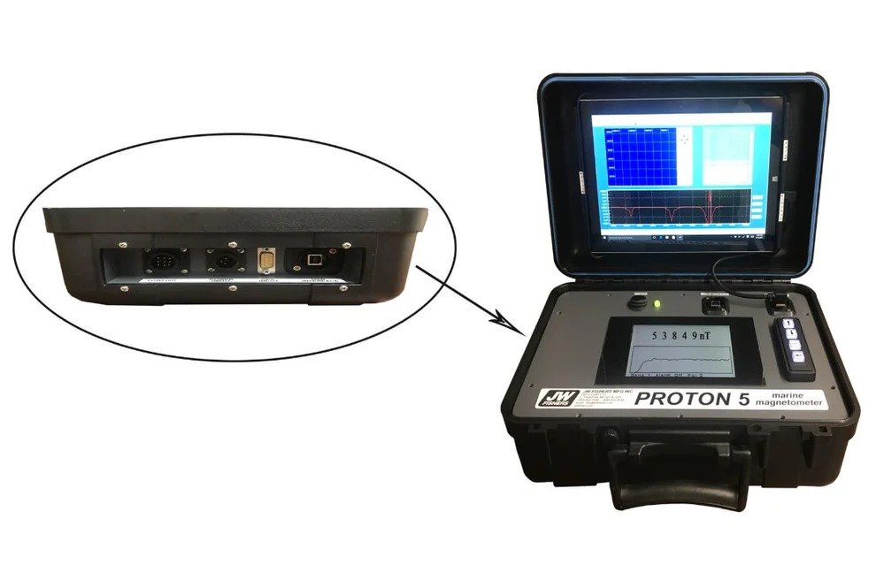 The PROTON 5 is a fifth-generation proton magnetometer from JW Fishers. It is a top-performing microprocessor-driven marine magnetometer detection system. The Proton 5 definitive detector for iron and steel targets. Its maximum range capability of 1,500 feet (450m) on each side (3,000-foot total swath) lets you search a wide area quickly and completely. The mag is also a good choice for locating a variety of smaller targets such as pipelines, anchors, chains, cannons, dredge heads, etc. It is especially useful when objects are buried in the bottom and can’t be found with sonar or video search systems.
