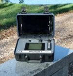 The base system includes a 200-foot depth rated towfish, 150 feet of Kevlar reinforced tow cable, and topside control box. Optional USB data output and Tracker 3 software are available which allow the mag readout to be displayed on a laptop computer, along with GPS position coordinates. Target position is displayed and recorded on the computer. An optional Microsoft Surface ® tablet can be mounted in the control box lid, eliminating the need for a separate laptop computer making it a streamlined package.