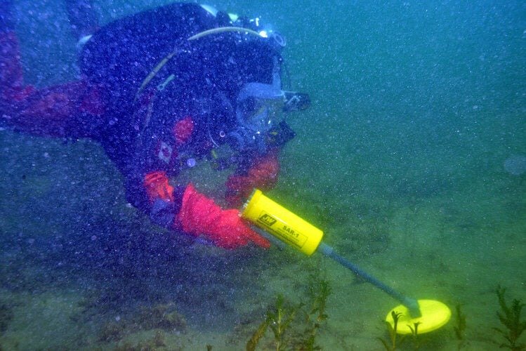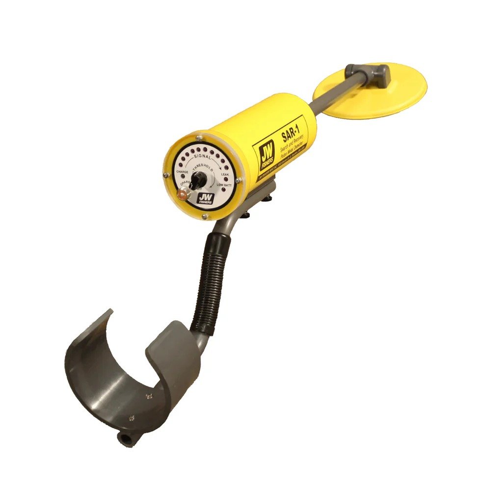 The SAR-1 works equally well in fresh or salt water and detects a variety of targets, including shell casings, handguns, rifles, shotguns, knives, UXO, mines, and any explosive device containing metal. The unit will also detect large targets (such as automobiles or aluminum boats) up to 6 feet. This high-performance Pulse Induction metal detector detects ferrous and nonferrous metal objects while ignoring environmental minerals. As some detectors do, the detector will not give false signals from salt water, coral, high iron rocks, or other ground mineralization. As with all JWF detectors, the detection range is unaffected by the material between the search coil and the metal target. The detection range remains the same, whether through air, water, silt, sand, mud, or rock.