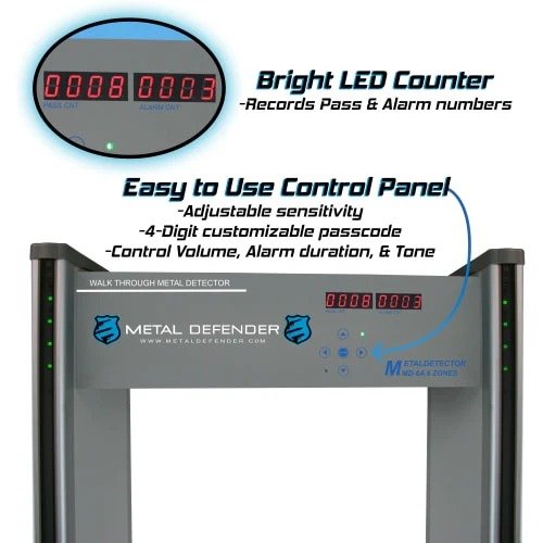Metal Defender’s MD6A Walk-through Metal Detector provides pinpoint accuracy and discrimination features. This detector is effective in all environments including but not limited to airports, government buildings, correctional facilities, and sports venues. While being cost effective it also provides the same security that professionals worldwide receive from other brands.