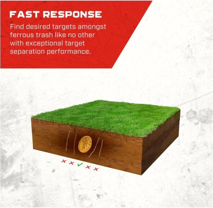 Powerful 2D Target ID Map and Enhanced Discrimination:  The 2D ID Map provides dual-axis feedback for conductive vs ferrous values, helping you decide what’s worth digging. Customizable ferrous limits and fast recovery speed reduce false digs.