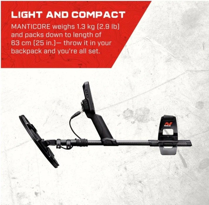 Discover the Minelab Manticore metal detector featuring an 11″ DD coil, Multi-IQ+ technology, and a waterproof design. Equipped with an advanced 2D ID map, it delivers exceptional depth, accuracy, and sharp target separation, ideal for both seasoned professionals and dedicated hobbyists.