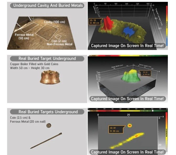 Patents Displaying the shape & dimensions of metals, displaying the depth of metals, displaying ground anomalies / cavities