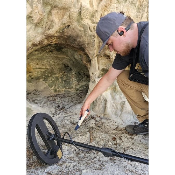 Very Low Frequency (VLF) allows detectorists to find metal objects in shallow soil. The VLF coil emits an electromagnetic field into the ground, which generates electric currents in buried metal objects. This creates its own electromagnetic field in the target objects, which can be detected by the eXp 5500. VLF metal detectors are particularly efficient at locating a variety of metals, including artifacts, relics, militaria, coins and jewelry.