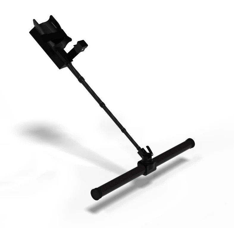 (Telescopic Rod with arm rest and handle with trigger for convenient treasure hunting.)