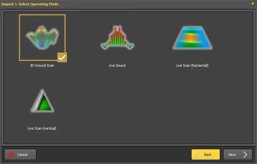 - Operating modes: 3D Ground Scan, Live Sound (Magnetometer), Live Stream