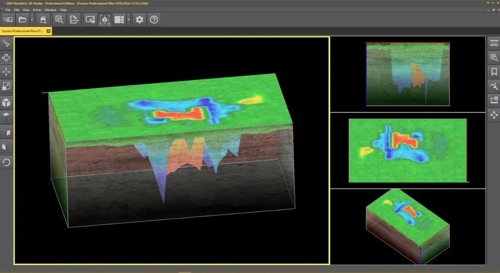 Fusion Professional Plus users are able to determine buried treasures, artifacts and further hidden objects before excavation. The saved 3D Ground Scan data can be analyzed in detail thanks to the detection software Visualizer 3D Studio: Detectorists are not only able to locate anomalies, but also to determine the size and depth of the detected underground structures.