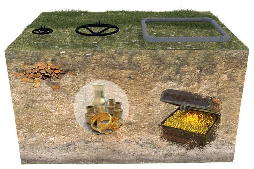 In this way, jewelry made of precious metals such as gold and silver, but also ferromagnetic objects as well as natural gold minerals and gold nuggets can be detected directly.