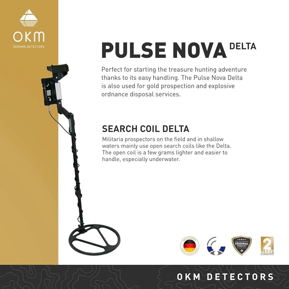 The OKM Pulse Nova PI metal detector is an ideal choice for beginners embarking on a treasure hunting journey due to its user-friendly design. It is widely utilized for locating gold and is utilized by explosive ordnance disposal teams. With various search coils available, the Pulse Nova pulse induction detector boasts excellent detection and depth capabilities for uncovering natural gold, coins, jewelry, and militaria.