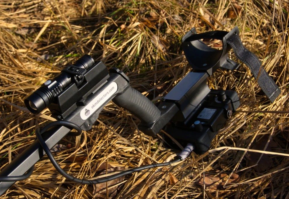 In just a few simple steps, a control unit and a flashlight can be attached to the telescopic rod at the top. At the lower end, the desired search coil is attached. Only the frame coil is not used with the rod.