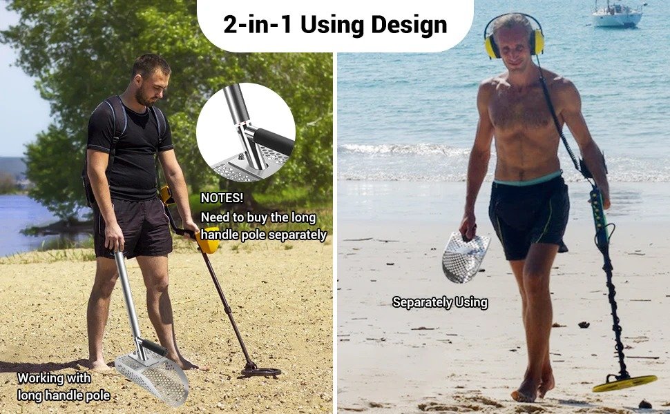 - MULTI-SCENERIO APPLICATIONS: The professional metal-detecting scoop and shovel increase the likelihood of discovering coins, silver, jewelry, and gold. It has a large and applied versatility on beaches, underwater, lawns, or soil, suitable for professional explorers or beginners, kids or adults, and vacationers.