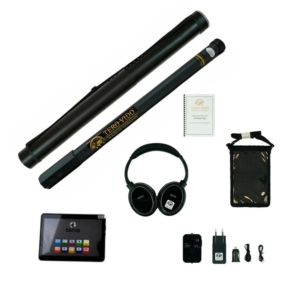 The whole device has been developed and manufactured in Germany. This detector helps you to discover and discriminate all kinds of metal. The included software shows if you found magnetic metals like iron or steel, or non-magnetic precious metals such as gold, silver or copper. Furthermore, the Tero Vido System is best suited to detect and locate underground voids, such as bunkers, graves, tunnels or other rooms.